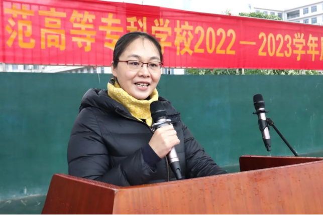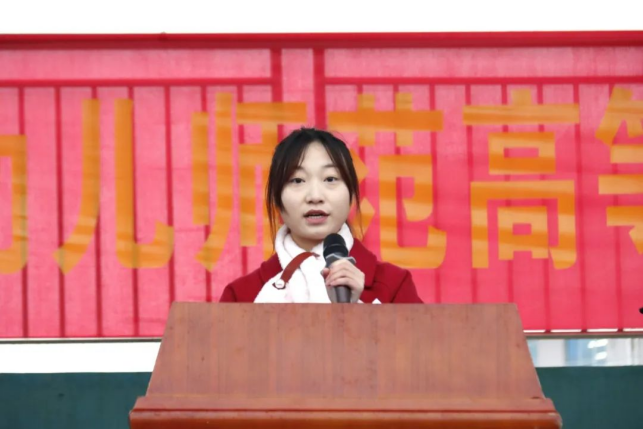 22级学前教育9班高铭骏同学作为获奖代表进行发言,她激励同学们心中要有理想,肩上要有担当,手上要有本领,做到自强不息、奋发向上,在实践中增长才干,用实际行动完成自己的梦想。