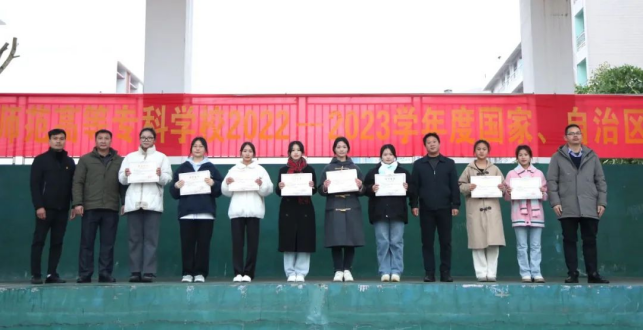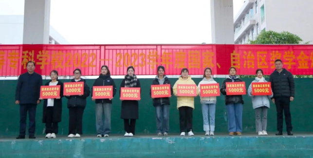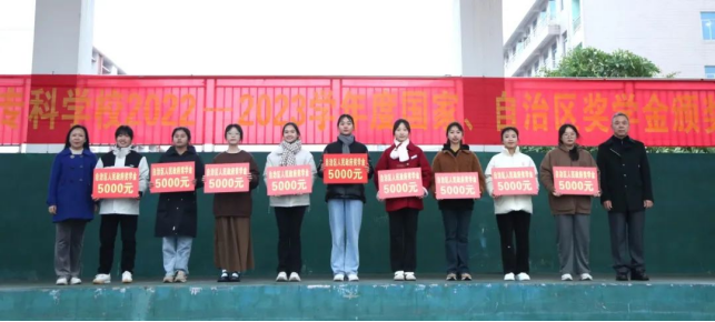 升旗仪式结束后,颁奖仪式正式拉开序幕?;嵘?,李飞宣读了获得国家奖学金、自治区政府奖学金以及校级奖学金的学生名单。接着,学校领导和二级学院领导为获奖的学生代表颁奖。