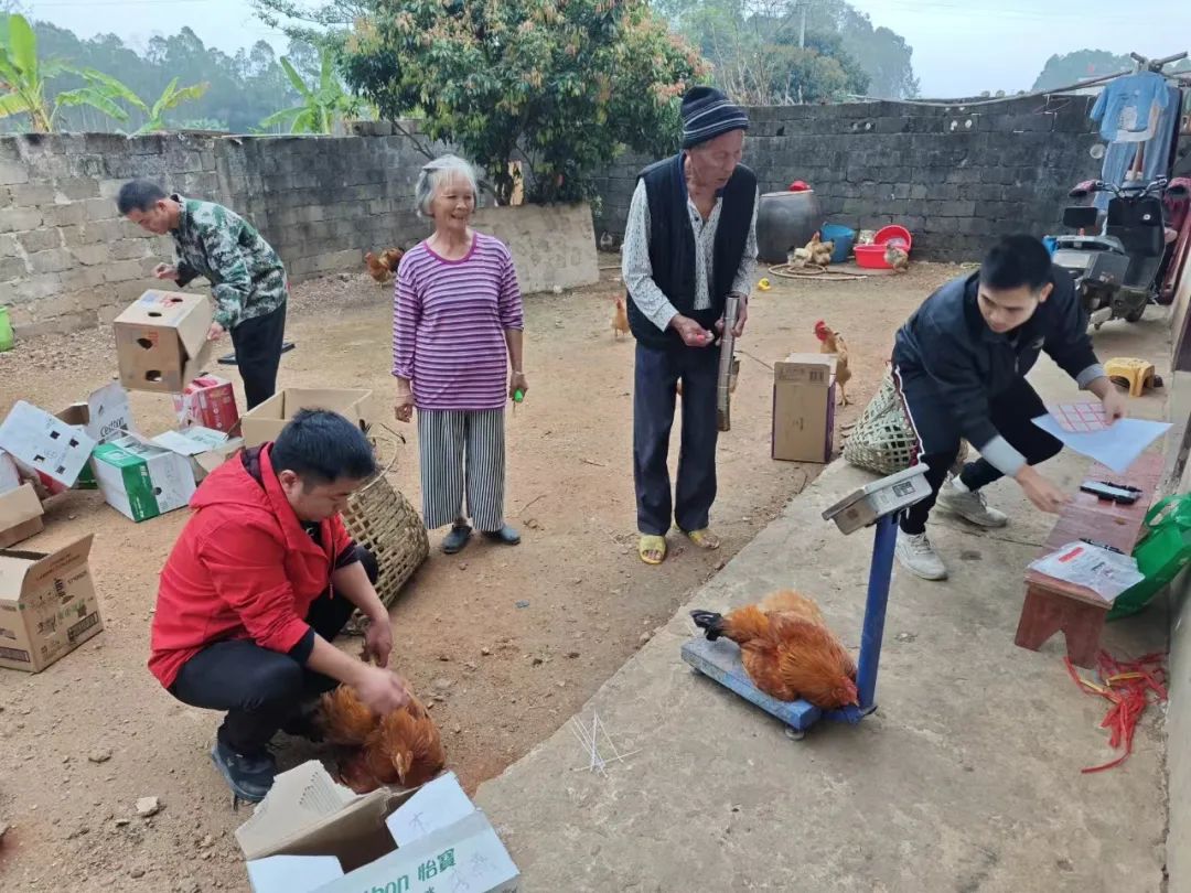 坡子坪驻村工作队员抓鸡称重