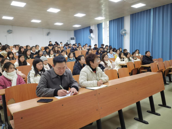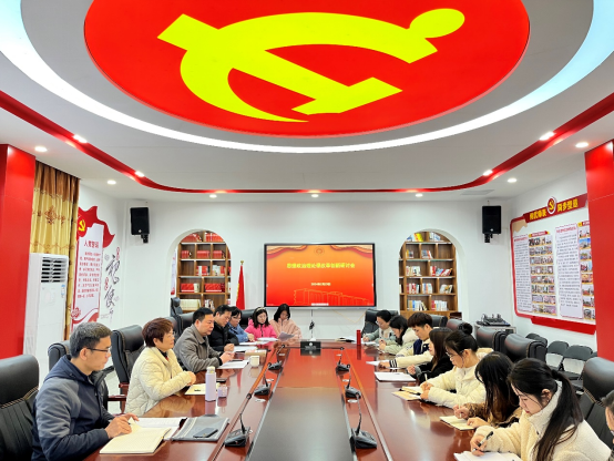为进一步推动新时代思政课改革创新,提高思政课教育教学质量。2月29日下午,市教育局党组成员、副局长,学校党委书记田茂群,学校党委副书记、纪委书记李飞走进思政课堂,开展现场教学听课活动??魏螅鞒终倏枷胝卫砺劭胃母锎葱卵刑只?,全体思政教师参加会议。