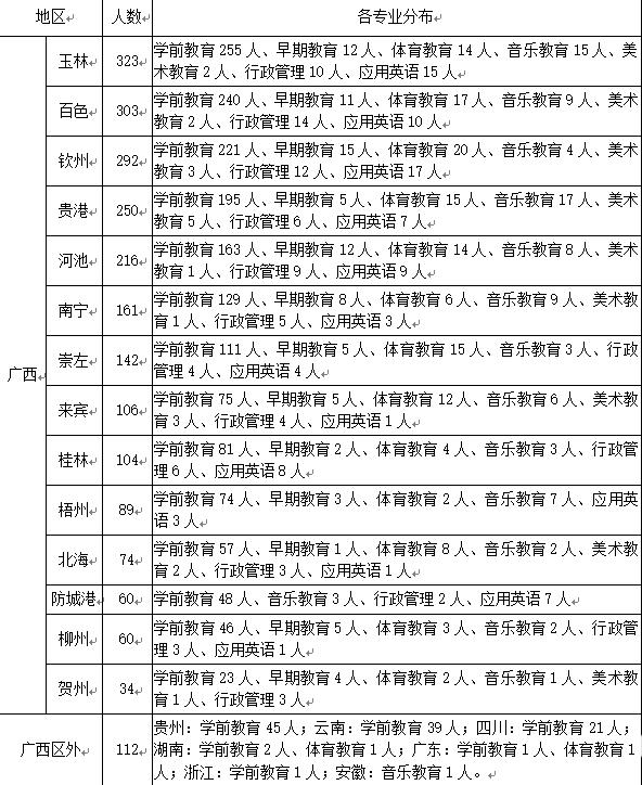 附:钦州幼儿师范高等专科学校2024届毕业生资源统计表
