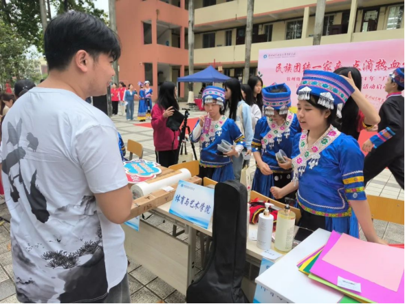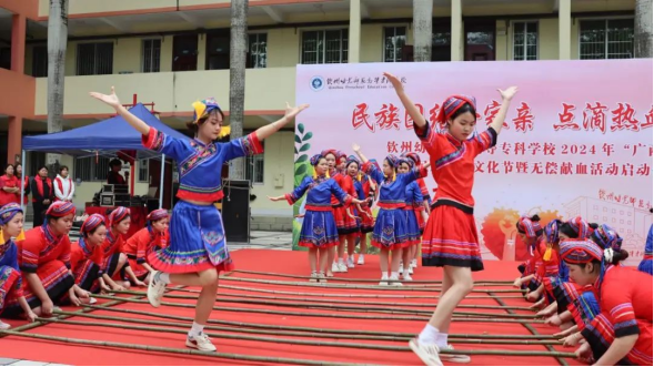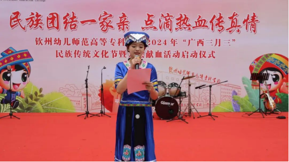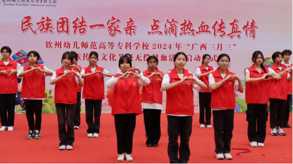 春暖花开三月三,又是壮乡欢歌时。为深入学习贯彻党的二十大精神,进一步弘扬中华民族传统文化,铸牢中华民族共同体意识,弘扬“人道、博爱、奉献”的红十字精神,传播无偿献血的公益理念,4月8日,我校团委开展了“民族团结一家亲 点滴热血传真情”钦州幼专2024年“广西三月三”民族传统文化节暨无偿献血活动。