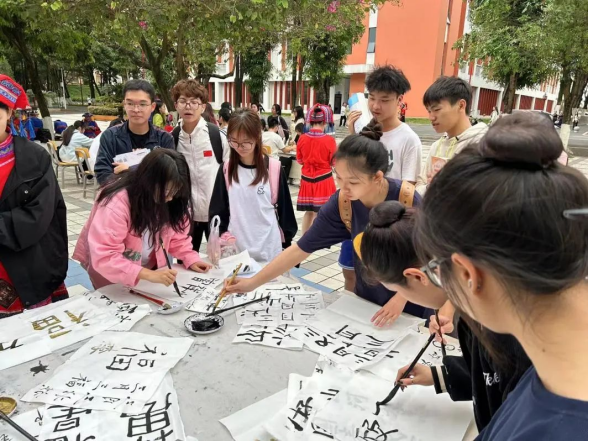 活动期间,同学们身着民族服饰,在活动现场伴随着山歌的欢快节奏体验民族运动、品尝民族美食,感受壮乡文化的独特魅力,下面随着小编一起来回顾活动现场的精彩瞬间吧!