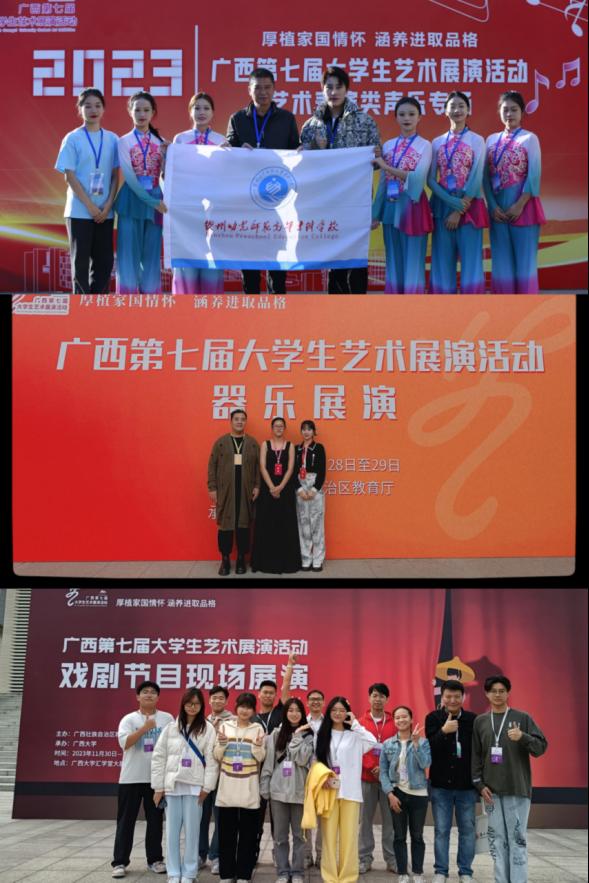 近日,自治区教育厅公布了广西第七届大学生艺术展演活动的获奖名单,我校选送的师生作品共荣获一等奖3项,二等奖13项,三等奖11项,以及“校长风采奖”1项、“节目优秀创作奖”1项。