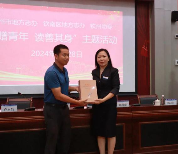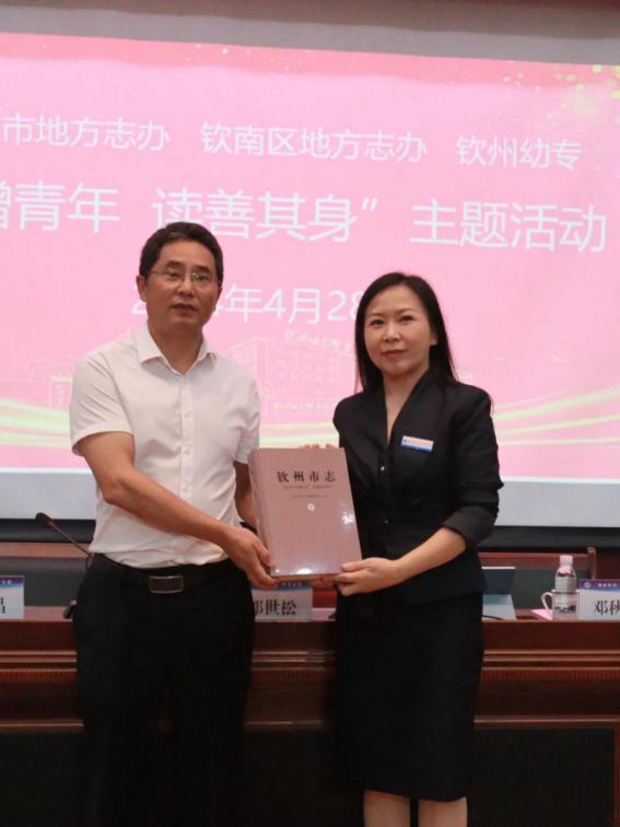 最美人间四月天,清风漫卷书香来。为庆祝第75个青年节,推动广大青年进一步学思践悟,做到知钦州、爱钦州、建设钦州,4月28日,钦州市地方志办和钦南区地方志办联合到我校开展“志赠青年 读善其身”主题活动。