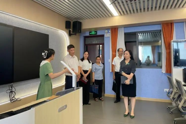 陈晓一行首先参观了我校婴幼儿托育服务与管理专业实训室,参观过程中,陪同领导详细介绍了实训室的设备功能、实践操作流程,以及专业人才培养方面的经验做法。