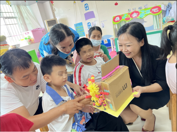 在授牌仪式前,邓秋晓一行走进市残疾人康复中心启智部和语训部,认真观摩康复教学课堂,仔细察看教学设施和康复环境,深入了解教师队伍建设、专业建设以及残疾儿童康复成效,与康复儿童互动交流,并为康复儿童送上幼专学生亲手制作的玩具。