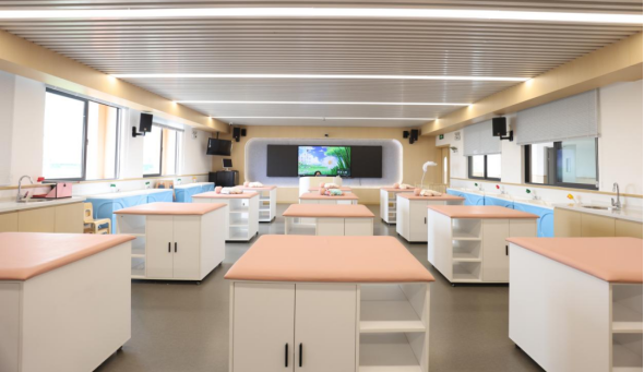 学校配备了一流的各类实训场馆:感觉统合实训室、托育机构仿真实训室、婴幼儿户外活动实训场、婴幼儿卫生保健实训室、婴幼儿虚拟仿真实训室、婴幼儿营养与辅食制作实训室等。