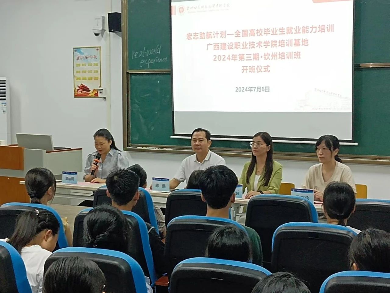 为全面贯彻落实教育部“宏志助航计划”高校毕业生就业能力培训要求,进一步提升毕业生综合素质和就业能力,7月6日上午,“宏志助航计划——教育部宏志助航全国高校毕业生就业帮扶项目”钦州基地第三期培训班开班仪式在我校顺利开班。我校党委委员、副校长陈熙出席开班仪式并致辞。