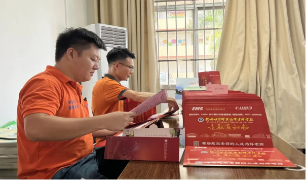 录取通知书经过认真核查后,由邮政快递工作人员进行封贴处理,以确保其完整性和保密性。