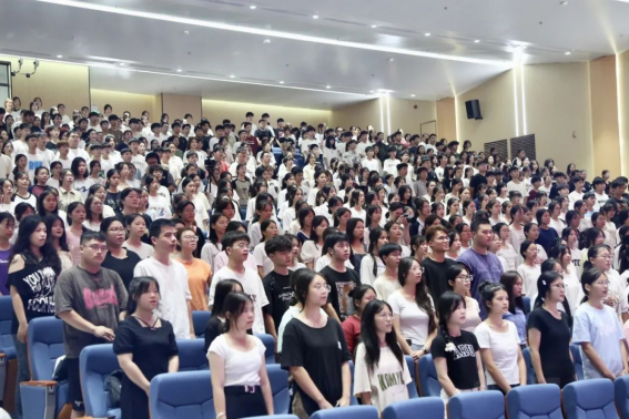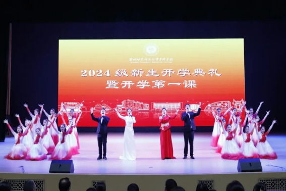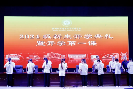 新学伊始,万象更新,秋光为序,筑梦起航。9月11日上午,我校2024级新生开学典礼暨开学第一课在体育与艺术学院一楼报告厅隆重举行。市教育局党组成员、副局长,校党委书记田茂群,校党委副书记、校长卢红青,校领导李飞、陈熙、邓秋晓、颜循泽、杨秋宇、梁燕清出席典礼??У淅裢ü呱先掏街辈?。