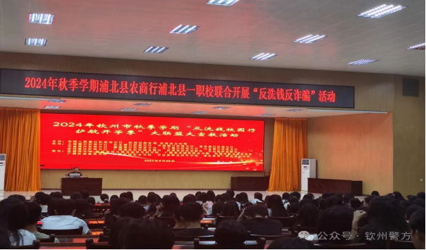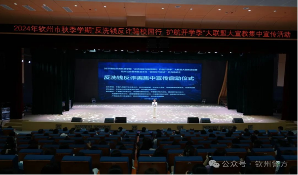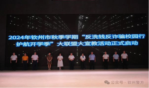 为进一步加大反洗钱、反诈宣传力度,切实增强广大人民群众防范诈骗洗钱的意识和能力,持续推进“学校-家庭-社会”联动宣教机制,营造平安和谐的社会氛围。2024年9月26日,我市在钦州幼儿师范高等专科学校举办2024年钦州市秋季学期“反洗钱反诈骗校园行 护航开学季”大联盟大宣教活动暨钦州公安服务基层文化“百场反诈巡讲”系列活动之反洗钱反诈骗集中宣传启动仪式。