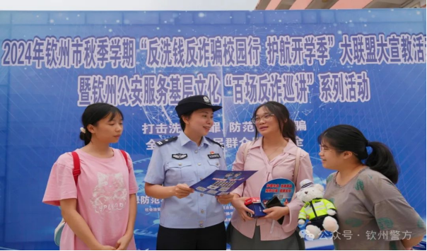 据悉,为做好 2024 年秋季学期反诈骗宣传进校园工作,8月份以来,我市在各大中专院校、中小学通过开展有奖知识问答、有奖征文、在校园固定阵地建设等形式开展“反诈第一课”,期间参与反诈知识问答37527人,收到征文630篇,在北部湾大学、广西英华国际职业学院、钦州幼儿师范高等专科学校等8所学校建立阵地。
