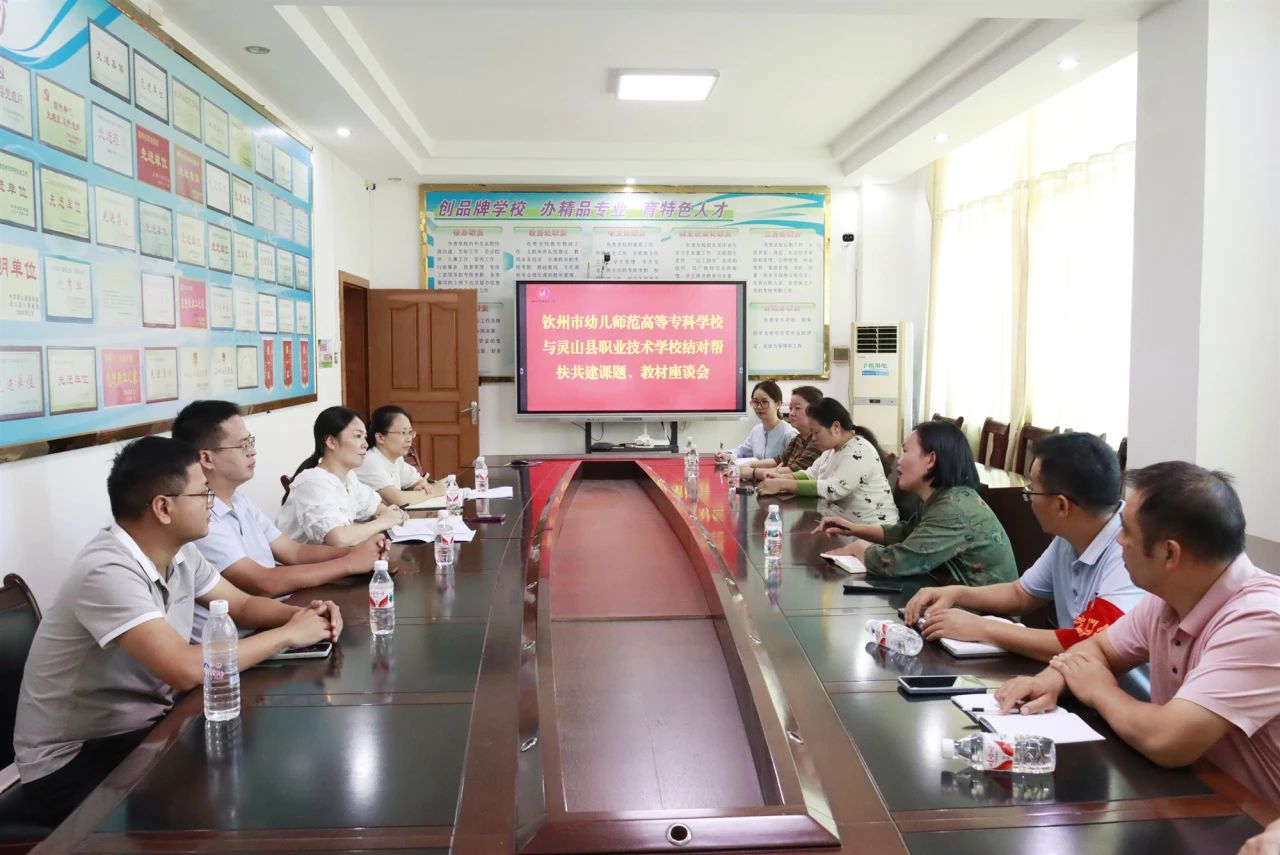 为进一步加强对灵山县职业技术学校的结对帮扶力度,实现城乡教育优质资源共享,提升职业学校的基础教育教学质量,10月10日下午,我校党委副书记、纪委书记李飞带队到帮扶学校灵山县职业技术学??拱锓鼍柙ね惺笛凳一疃?。学校党政办、学工处、教务处、科研处、后勤处等部门负责人参加活动。