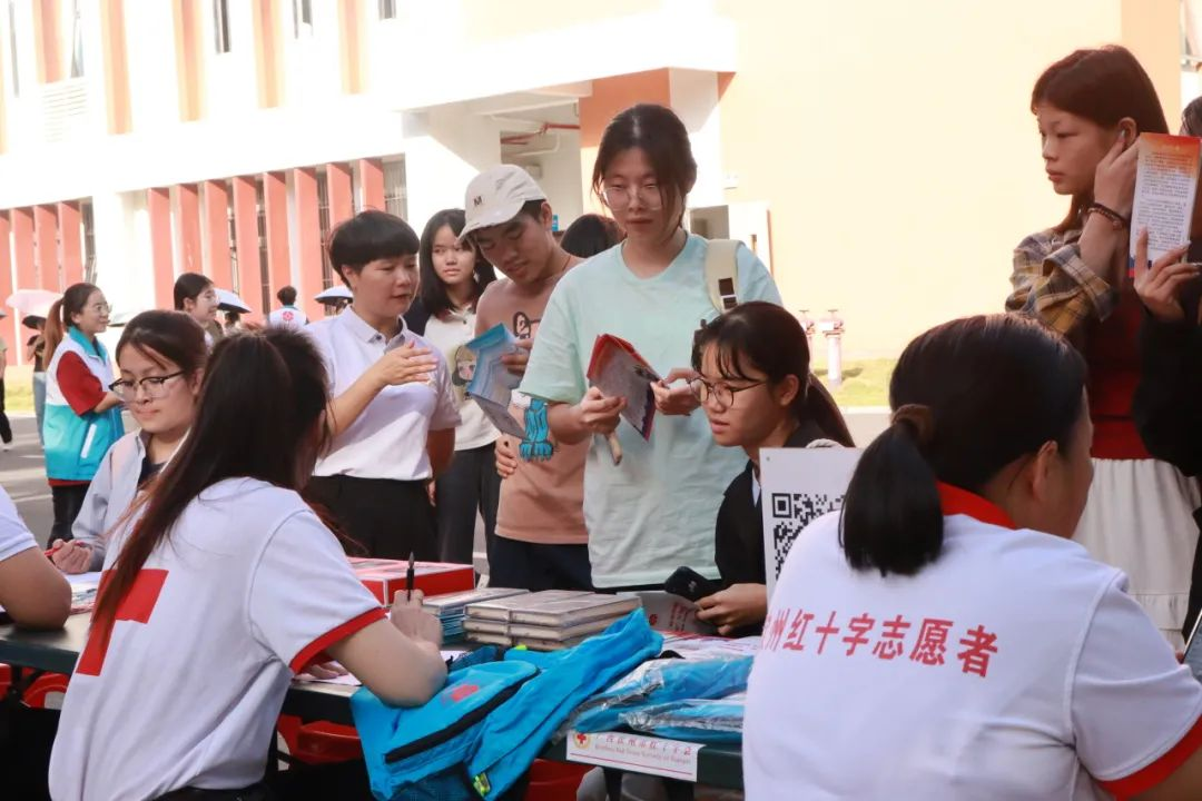 24日下午,志愿者骨干在学校主校道旁进行“三献”宣传。他们通过向过往同学发放宣传资料、讲解“三献”相关知识等方式,让更多的人了解无偿献血对身体无碍、捐献造血干细胞无碍健康、捐献器官生命永续的重要意义。