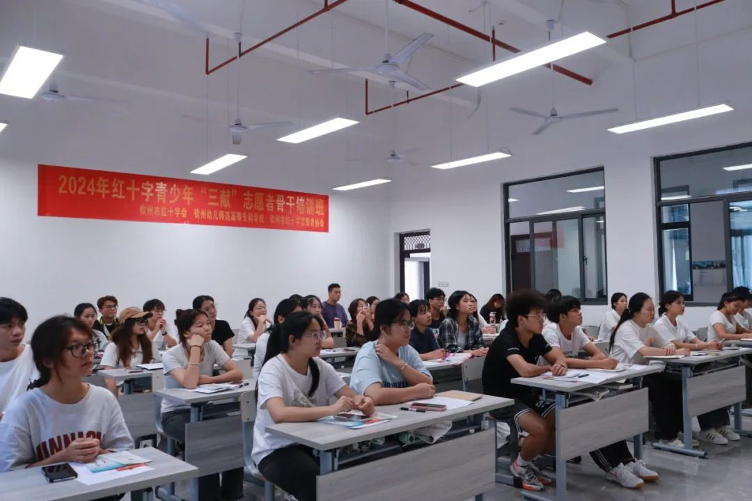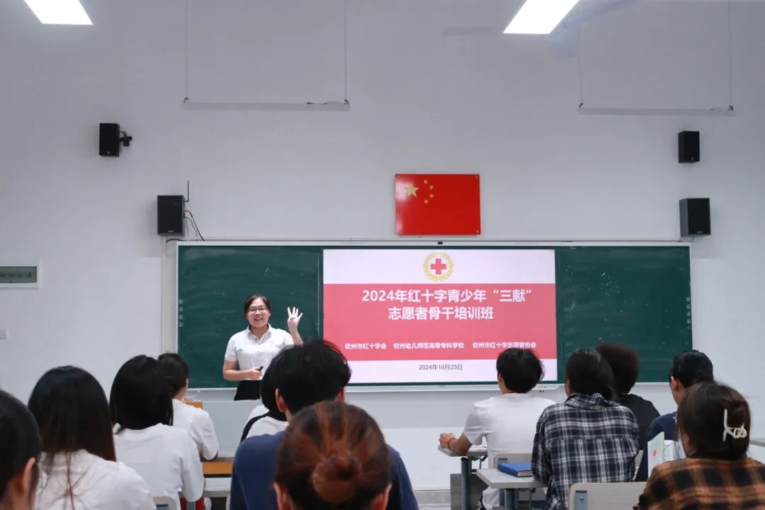为大力弘扬“人道、博爱、奉献”红十字精神,提高“三献”志愿服务工作效能,10月23日,我校联合钦州红十字会,举办红十字青少年“三献”志愿者骨干培训班。我校40名学生志愿者骨干参加培训。