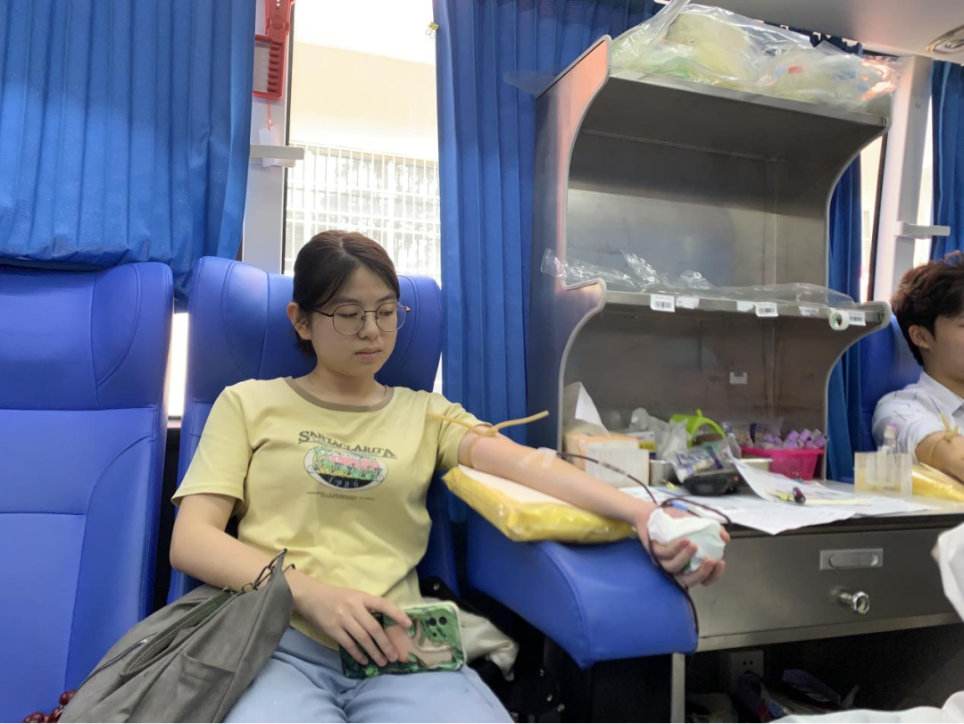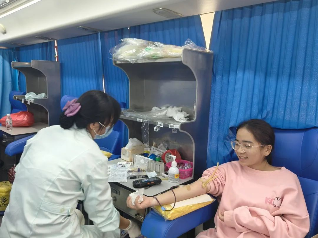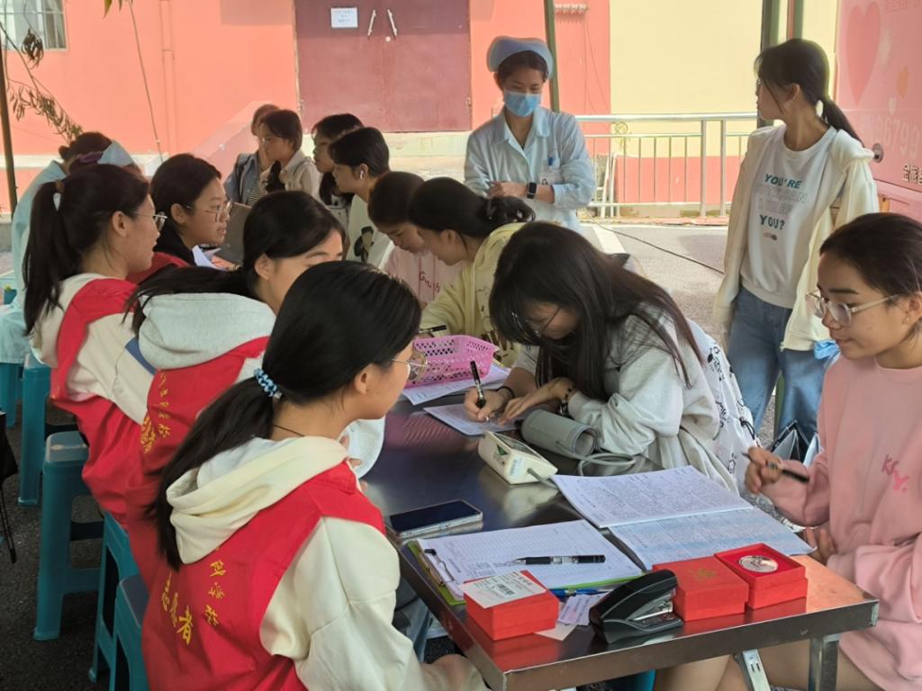 次日,市中心血站在我??沽宋蕹ハ籽疃?,师生积极响应号召,以实际行动践行社会责任?;疃殖【挥行?,前来献血的师生络绎不绝,在这些无偿献血的师生队伍中,既有连续多年无偿献血的“老面孔”,也有首次无偿献血的“新生力量”。他们在医护人员及志愿者们的引导下,依次进行证件核验、信息登记、健康征询、化验筛查等各项准备工作。一滴滴热血从献血者手臂缓缓流进储血袋,汇聚成一份份生命的希望。
