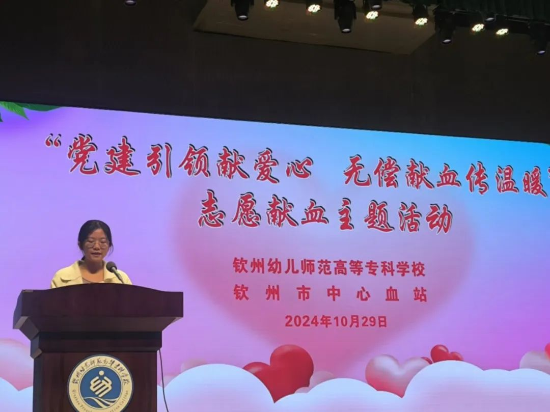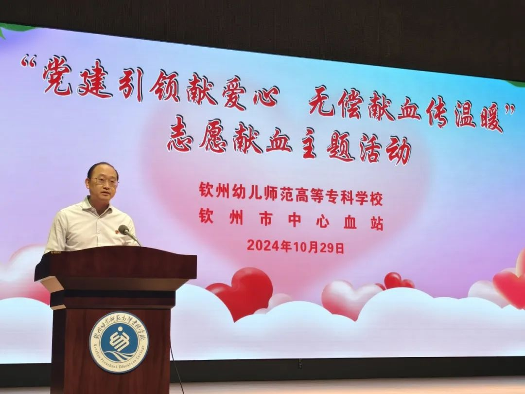 为培育和践行社会主义核心价值观,充分发挥党员在无偿献血中的先锋模范作用,大力弘扬“爱心献血有你有我”的社会新风尚,以实际行动践行人民至上、生命至上理念,营造“我献血,我光荣”的浓厚氛围,近日,我校团委与儿童早期发展学院党支部、人文与管理学院党支部联合钦州市中心血站开展“党建引领献爱心,无偿献血传温暖”志愿献血主题活动。市中心血站副站长颜以长一行及我校师生代表共800余人参加启动仪式。