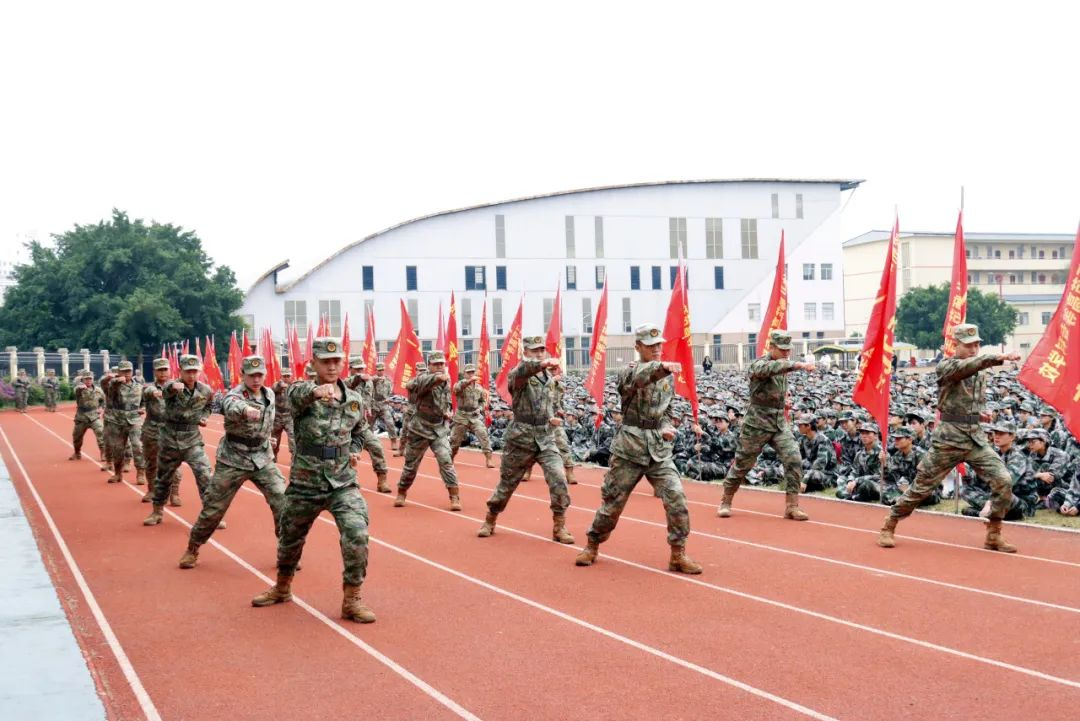 大会上,承训教官们在现场演示了队列、擒拿格斗训练科目。教官们齐整的步伐,干净利落的动作,矫健的身姿展示了军人的风采,为同学们树立了优秀的榜样,也赢得在场师生的热烈掌声。