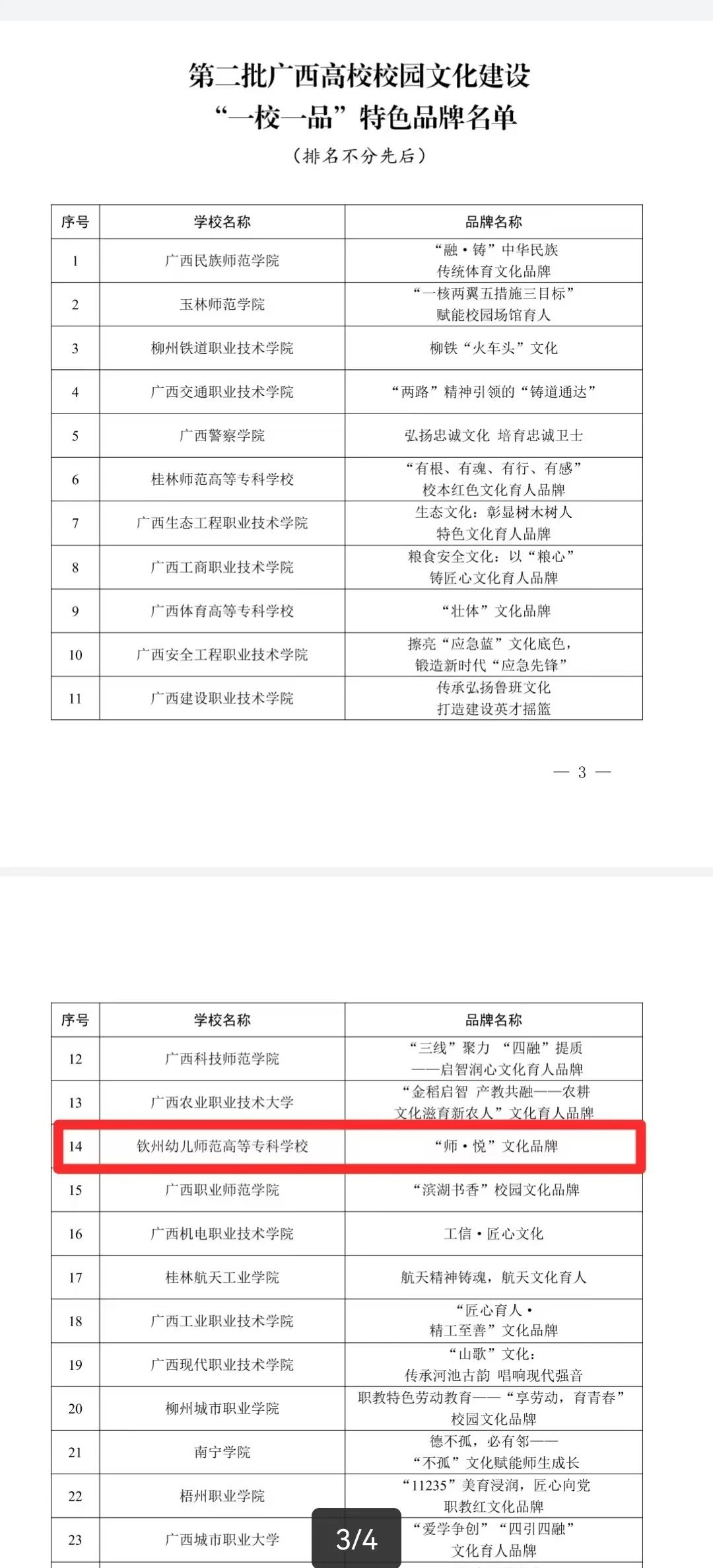 近日,自治区党委教育工委发布《关于公布第二批广西高校校园文化建设“一校一品”特色品牌的通知》,我校《“师·悦”文化品牌》项目成功入选广西高校校园文化建设“一校一品”特色品牌。