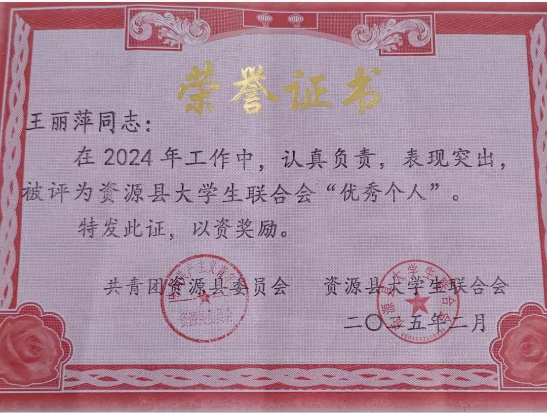 王丽萍,共青团员,人文与管理学院中文专业23级01班的学生,现担任班级学习委员,钦州幼儿师范高等专科学校自主管理委员会办公室主任,人文与管理学院自主管理委员会检评部部长一职,在大学期间参加校内勤工助学,担任学工处助理一职。在大学期间,曾荣获2023-2024学年度国家励志奖学金、2023-2024学年度校级二等奖学金、2023-2024学年度“三好学生”“优秀学生干部”“最美钦幼学子”“校园文明先进个人”“劳动实践先进个人”、2024年人文与管理学院中文专业文学创作大赛诗歌组二等奖、2024年校级创新创业比赛银奖、资源县共青团员委员会大学生联合会“优秀个人”“优秀志愿者”等奖项。