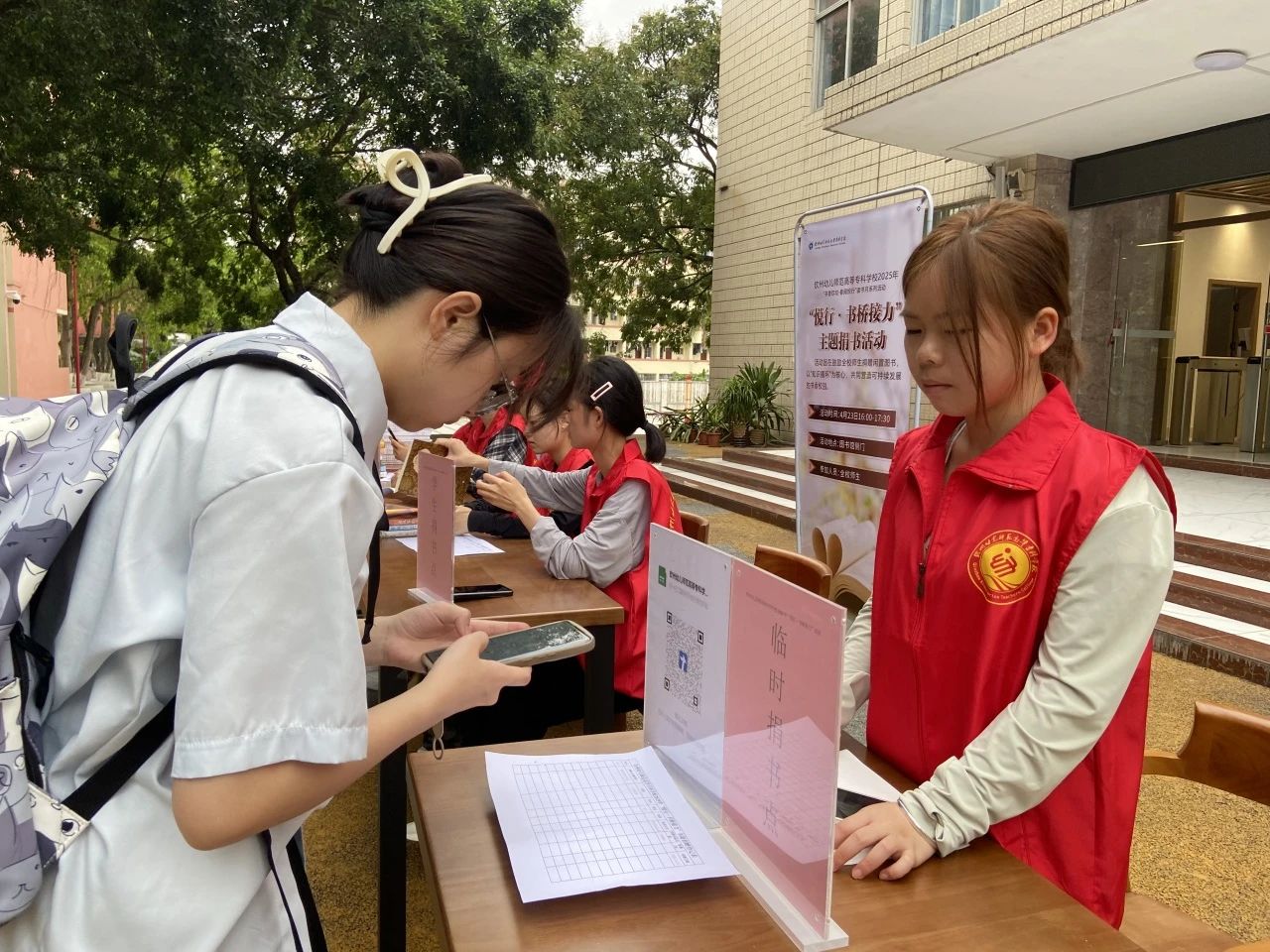 4 月 23 日下午,图书馆热闹非凡,“悦行·书桥接力”主题捐书活动在此举行?;疃捌冢餮г?、各部门积极号召师生捐赠闲置图书,大家纷纷响应,带着自己珍藏的书籍来到捐赠点。