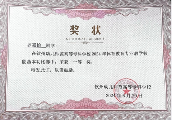 她深知,扎实的专业知识是未来立足社会的根本。在校期间,她始终保持对知识的强烈渴望,学习态度端正,勤奋刻苦??翁蒙?,她专注听讲,积极与老师互动;课后,她主动钻研专业知识,不断拓宽知识领域。凭借不懈努力,她的成绩一直名列前茅,荣获2023-2024学年度本专科生国家奖学金、连续两年获得校级一等奖学金,还多次获得“三好学生”“优秀共青团员”“最美钦幼学子”等荣誉称号。在专业技能竞赛方面,她精心准备,表现出色,获得2024年体育教育专业教学技能基本功比赛一等奖、学校2024年体育专业全区师范生教学技能大赛校级比赛二等奖等荣誉,用实力证明了自己的专业素养。