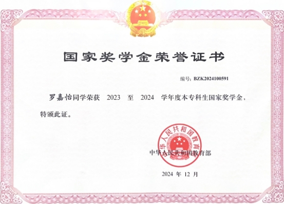 从初入校园的青涩学子,到斩获国家奖学金的优秀榜样,罗嘉怡用奋斗与坚持诠释了青春的意义。她用自己的成长经历告诉我们:青春因奋斗而精彩,人生因拼搏而璀璨。未来,她将继续以饱满的热情、坚定的信念,在逐梦的道路上奋勇前行,为实现中华民族伟大复兴的中国梦贡献自己的青春力量,也激励着更多学子以她为榜样,勇敢追逐自己的梦想。