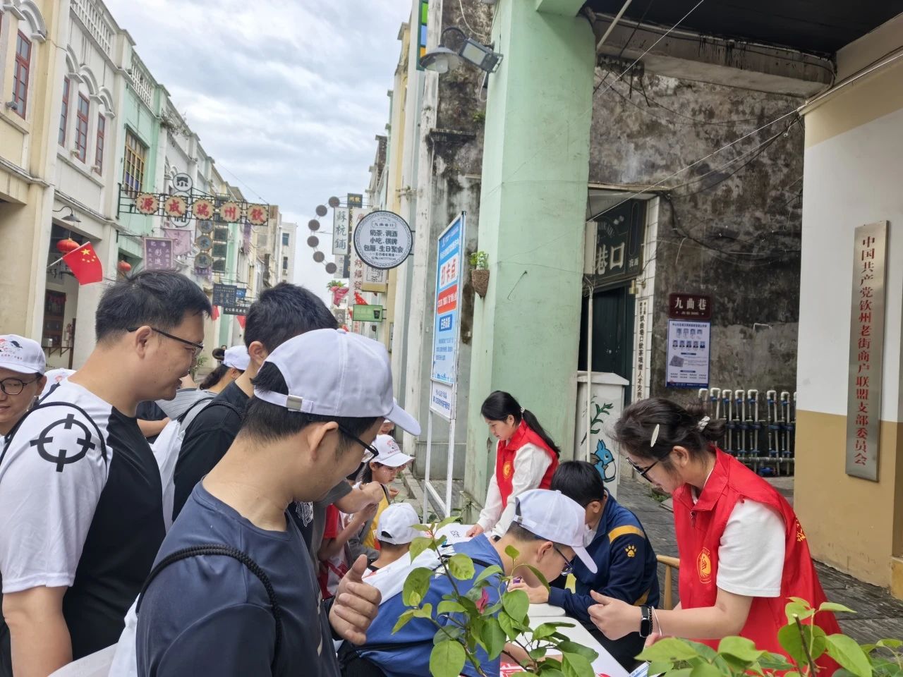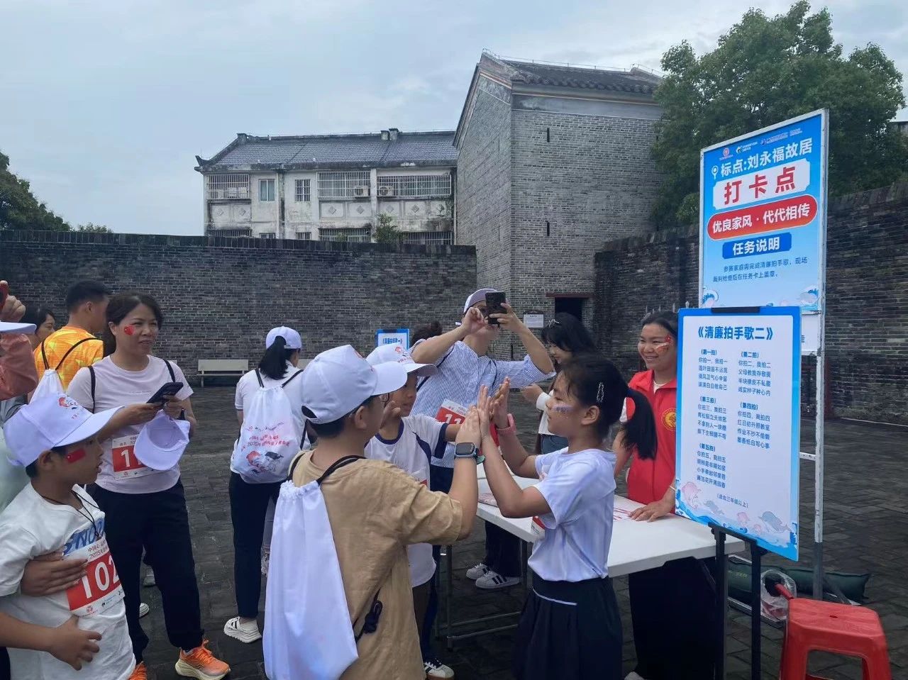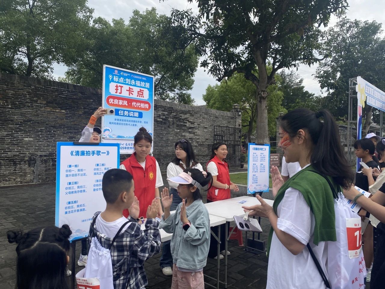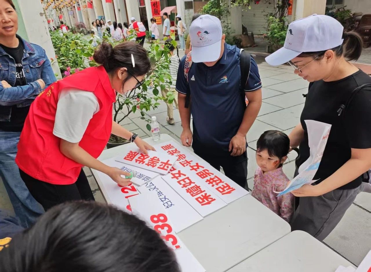 活动当天清晨6点30分,我校青年志愿者集结出发,奔赴各自的服务岗位,以高度的责任感和使命感投入工作,提供引导、咨询和安全保障服务。负责打卡任务的志愿者,提前准备好背篓、绣球、手抄报彩笔、拼图等道具,活动中热情引导参赛亲子家庭,耐心讲解游戏规则、玩法,解决一些突发小状况。负责引导疏散的志愿者,在各打卡点周边手持指示牌,清晰指引A、B路线行进方向,时刻关注人流密度,及时疏导聚集人群,并通过对讲机保持点位间沟通,保障人流有序。在途经中山路、靖海路等关键路段时,志愿者们时刻关注着大家的安全,提醒过往车辆注意避让。