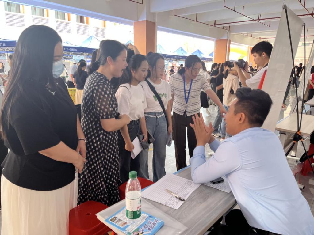 在双选会现场,学校已就业毕业生、学生干部、学生党员等还充分发挥朋辈互助作用,主动引导未就业的毕业生有序应聘,分享求职经验和技巧,为他们提供帮助和支持。各二级学院领导、辅导员及帮扶导师也全程陪同毕业生投递简历,与毕业生一道与意向单位进行深入洽谈,为毕业生出谋划策,为毕业生成功就业提供了有力保障。