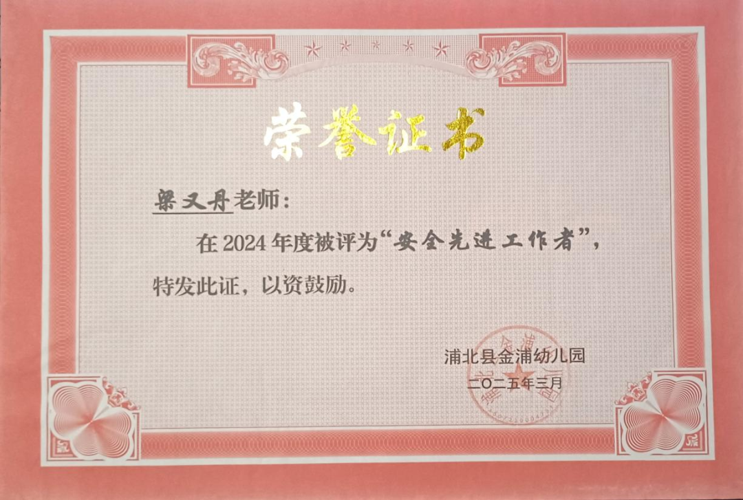 在2024年度浦北县金浦幼儿园表彰大会上,一位年轻教师获得了“师德师风模范”和“安全先进工作者”两项殊荣。这位教龄不足一年的优秀教师梁又丹,毕业于钦州幼专学前教育专业,正以青春之笔书写了新时代幼教工作者的精彩篇章。