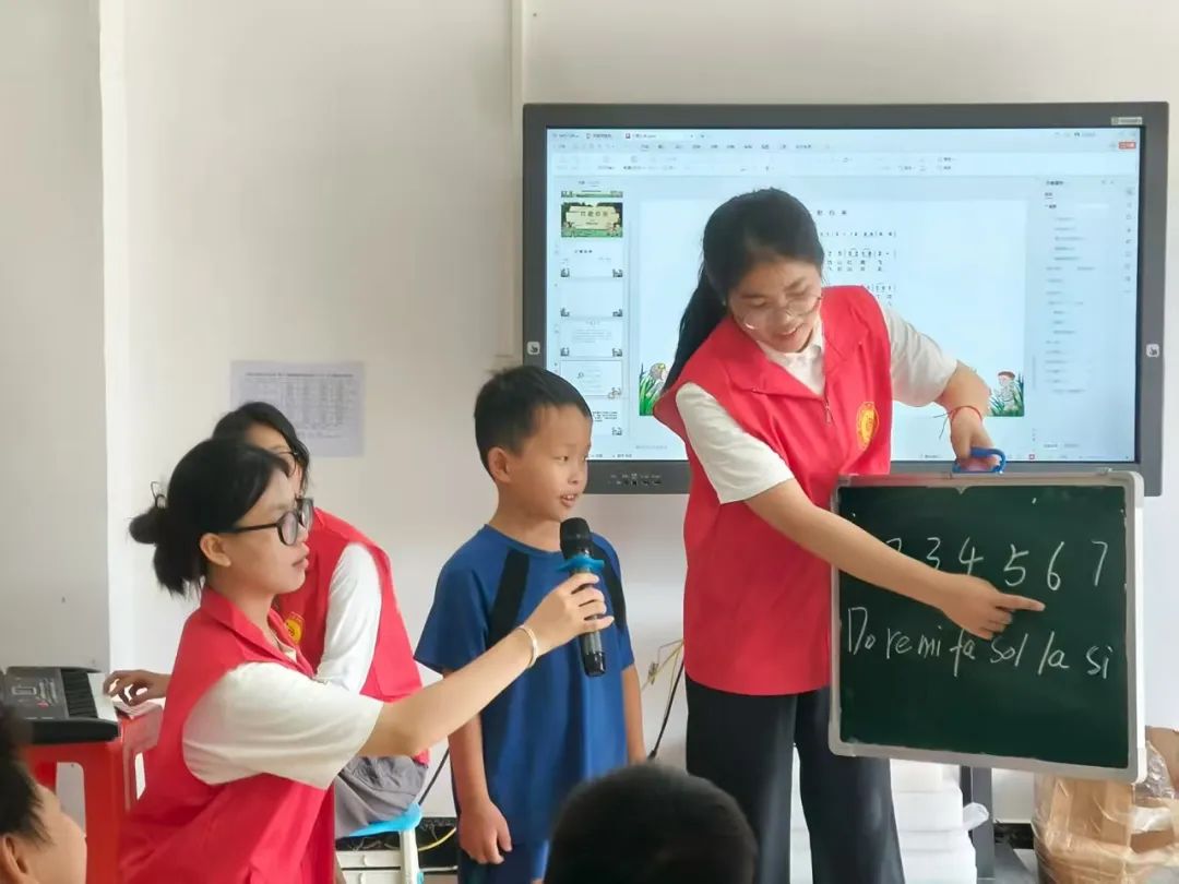 近日,我校团委开展暑期“三下乡”社会实践活动。在校团委书记李琛琛及团委老师覃春暖、李晴的精心组织和带领下,校团委“悦兴”青年志愿者团队前往浦北县石埇镇坡子坪村。在驻村工作队何国祥老师和杨辉老师的协助与指导下,志愿者们为当地少年儿童深入开展了教育帮扶、普通话推广、传统文化弘扬等系列活动,在“希望的田野”上书写青春答卷。