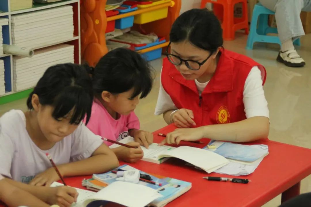 炎炎夏日里,教室成了求知的沃土。志愿者们热情地充当“知识引路人”,悉心辅导孩子们做暑假作业。无论是拼音、汉字,还是数学难题、语文作文,他们都会耐心讲解、细致答疑??醋藕⒆用怯衫Щ笞斫猓由涞昧鞒?,每一次难题的攻克,每一份工整的作业,都是知识积累的鲜活例证。志愿者们以温暖的陪伴和无尽的耐心,见证并守护着每个孩子的进步与成长。