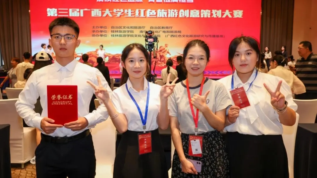 近日,由自治区文化和旅游厅、自治区教育厅联合举办的第三届广西大学生红色旅游创意策划大赛公布了获奖名单,我校研学旅行管理与服务专业学生南佳均、庄明雅、周馨组成的团队,在带队老师戴翠兰、指导老师李小敏的悉心指导下表现突出,其作品在全区900余件参赛作品中脱颖而出,荣获红色旅游文创产品设计类三等奖。