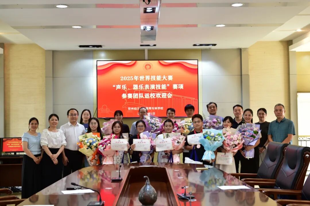 8月30日,2025年世界职业院校技能大赛总决赛争夺赛表演艺术赛道(高职组)赛事圆满落幕。钦州幼儿师范高等专科学校代表队凭借扎实过硬的专业功底、独具匠心的艺术创意以及默契高效的团队协作,在激烈角逐中脱颖而出,荣获表演艺术赛道(高职组)铜奖,创造了学校自参赛以来的历史最好成绩!