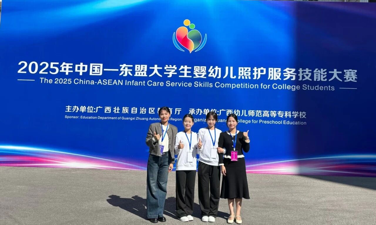 2025年中国-东盟大学生婴幼儿照护服务技能大赛于11月14日在南宁圆满落下帷幕。在学校领导的高度重视与统筹指导下,我校婴幼儿托育服务与管理专业团队师生积极备赛,攻坚克难。在比赛中,她们凭借扎实的专业素养、新颖的照护创意与出色的团队协作脱颖而出,总分位列第四名,荣获大赛二等奖,学校荣获最佳组织奖,充分彰显了我校良好的专业建设水平与人才培养质量。