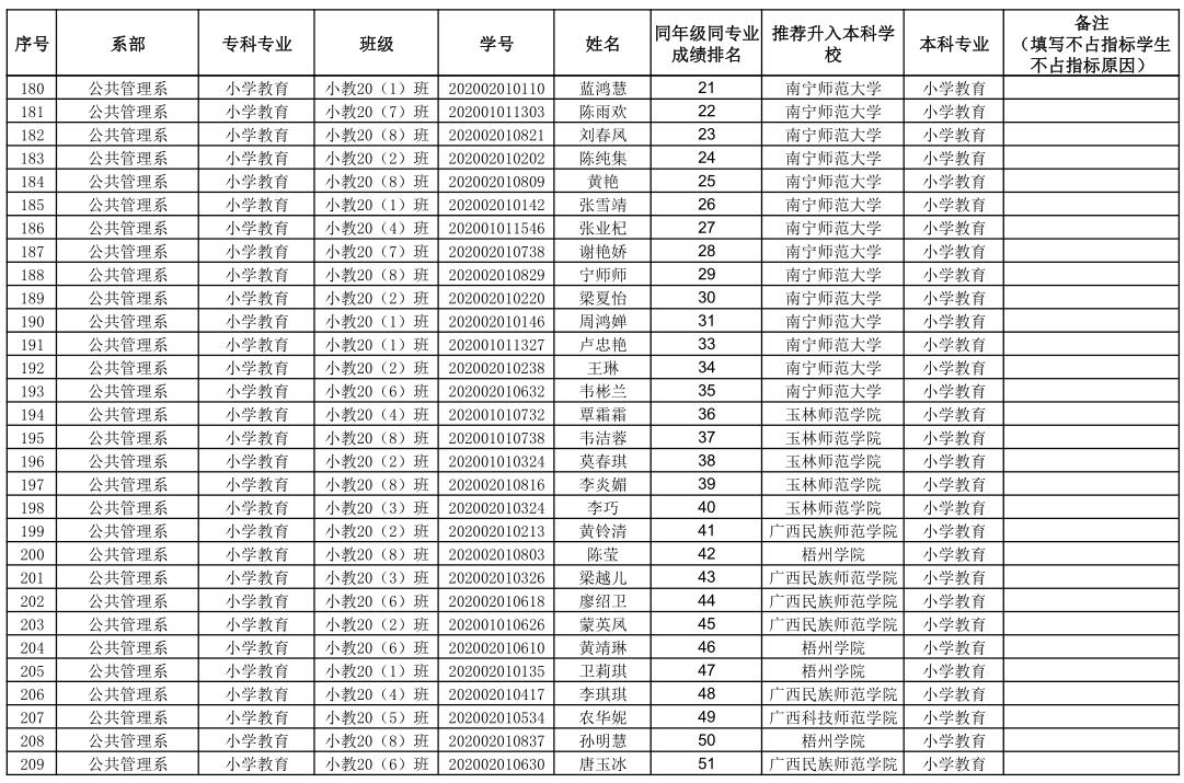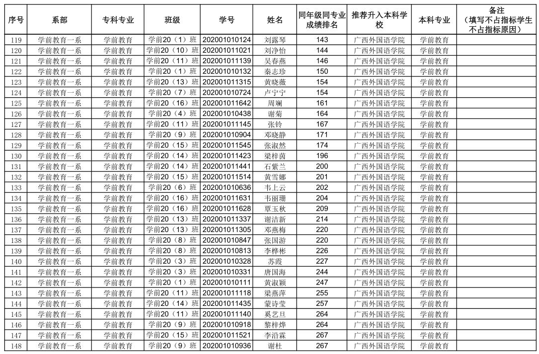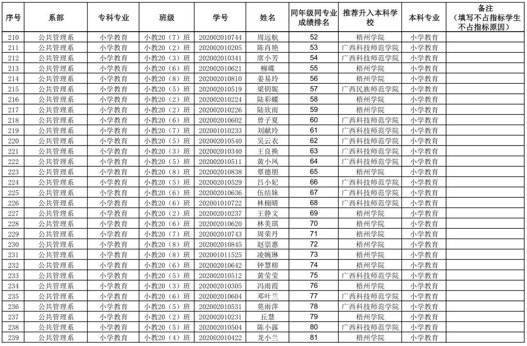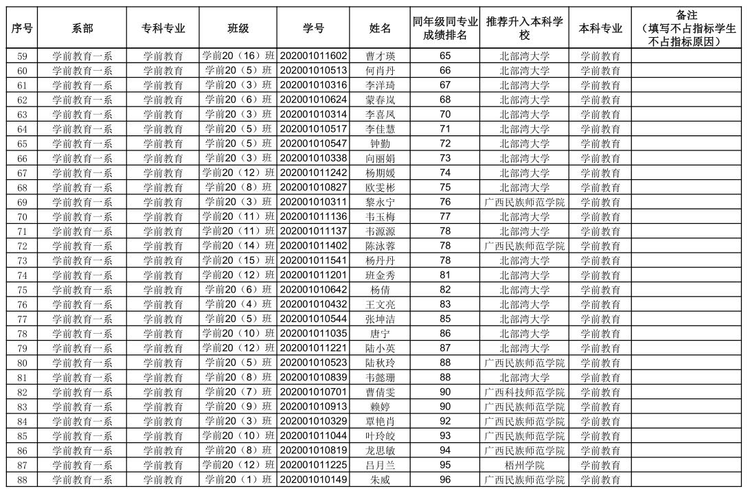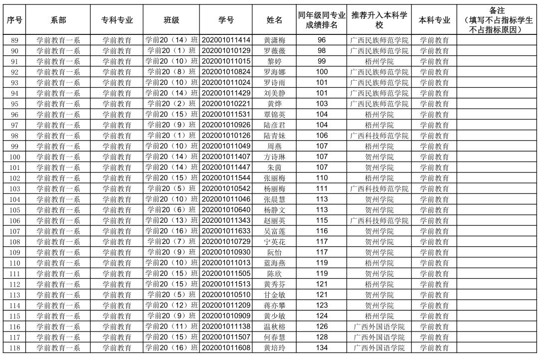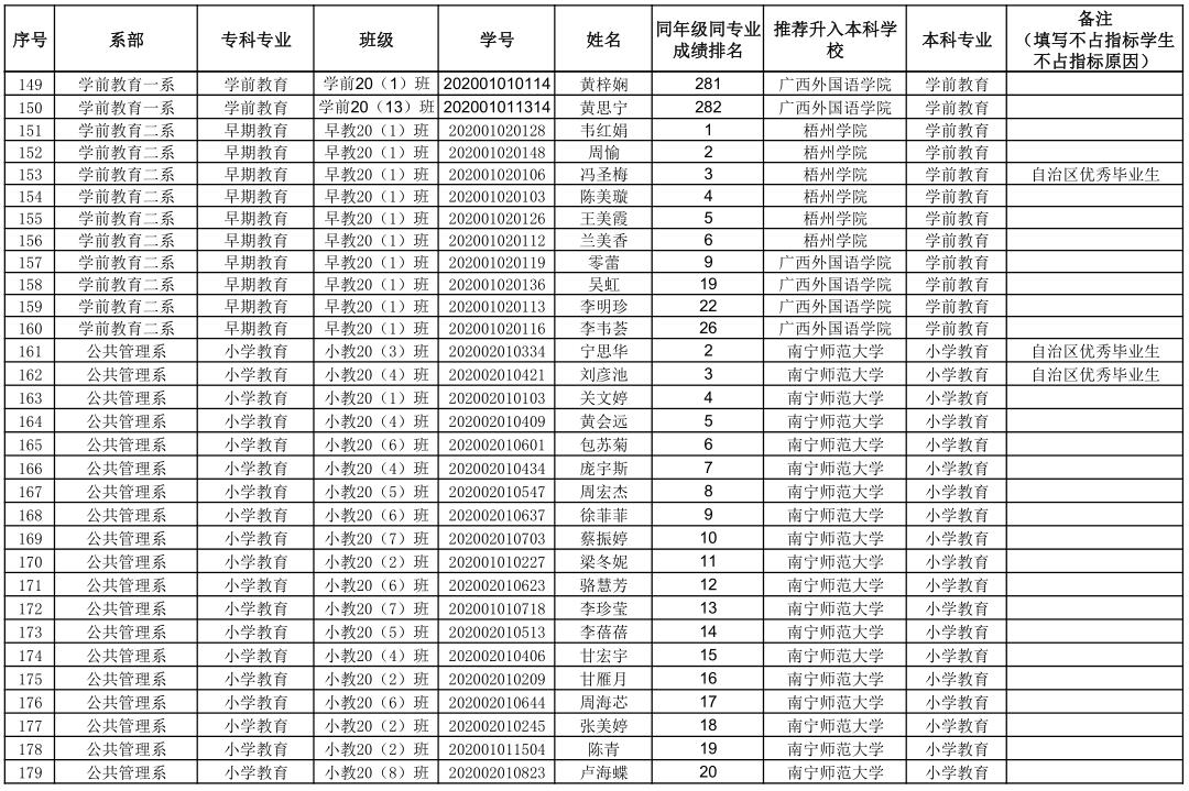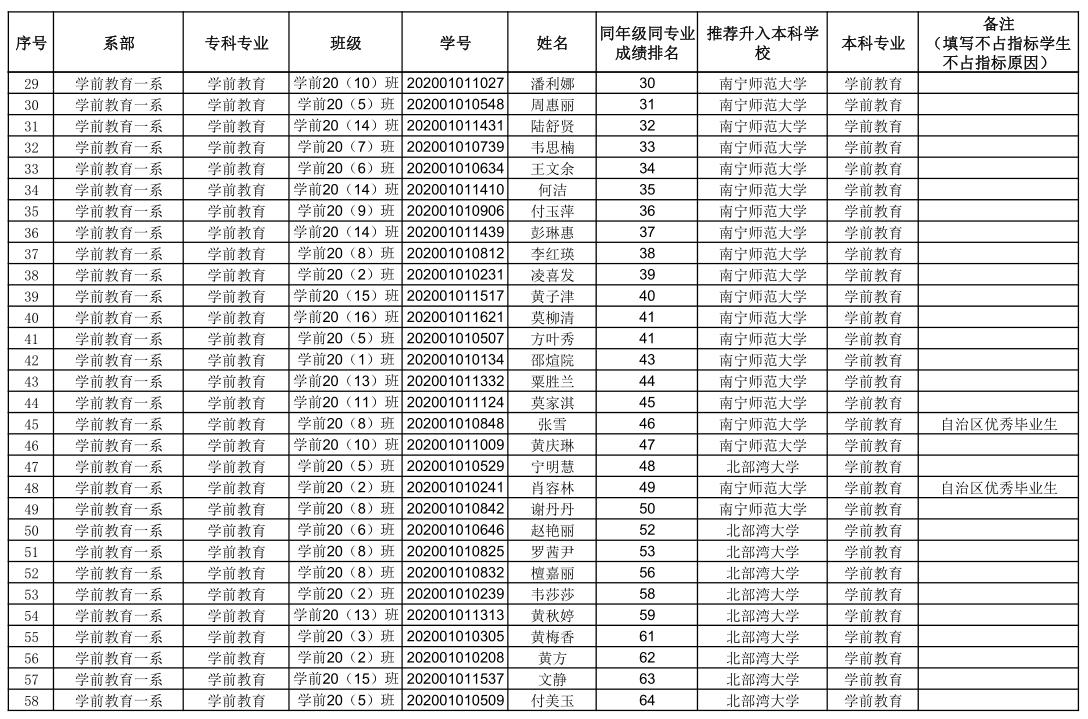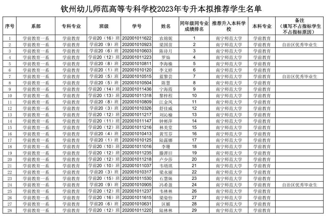附件:钦州幼儿师范高等专科学校2023年专升本拟推荐学生名单