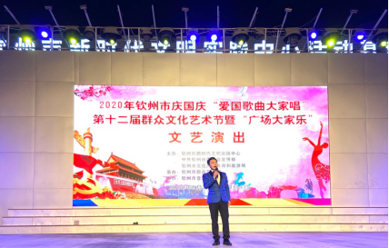 为激发全民终身学习、热爱歌唱的热情,结合学科专业特点,10月3日-7日晚,我校声乐教师发挥专业优势,与各文艺系统歌唱演员一起,走进广场学校,参加全市组织的“爱国歌曲大家唱”主题晚会演出活动。文艺演出在钦州湾广场举行,现场17名歌手与累计近5000名群众一起高唱爱国歌曲,歌唱伟大的祖国、歌唱美好的新生活。