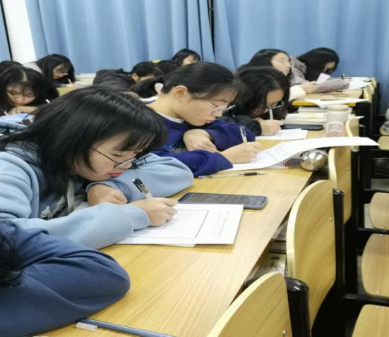 各班班主任宣讲比赛规则后,学生们坐姿端正、下笔如有神地开始比赛。此次比赛的书写内容为“朝辞白帝彩云间,千里江陵一日还,两岸猿声啼不住,轻舟已过万重山……”学生全神贯注,落笔如行云流水般,一气呵成,整个比赛过程中学生饱含热情,积极创作。