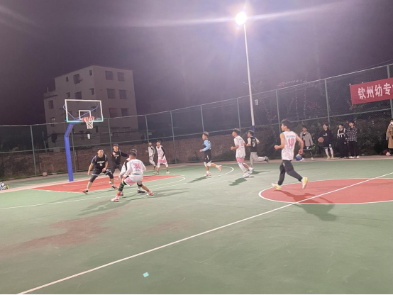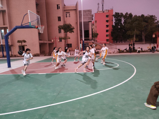 在赛场上球员们积极投入、全力以赴,每一次的运球、转身、变向、上篮都展示了球员们努力拼搏的精神,点燃了现场的火热气氛。在场外的啦啦队也不遗余力地为球员们加油助威!在比赛过程中,裁判员严肃认真地判决好每一个球,保障了比赛的公平、公开、公正。