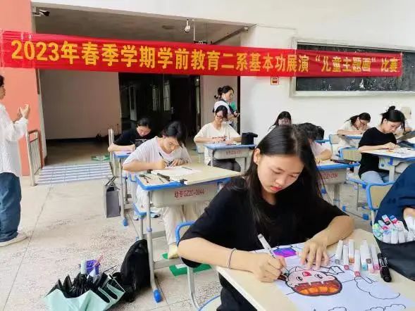 为强化专业技能,提高师范生的综合素质,近日,由钦州幼专学前教育二系主办、系团学会协办的专业基本功大赛儿童主题画赛项于在5号教学楼中庭举办。