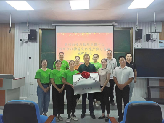 活动现场,钦州幼专副校长庄礼训与市非遗中心副主任李钦莲共同为“钦州市非物质文化遗产进校园传习基地”授牌。