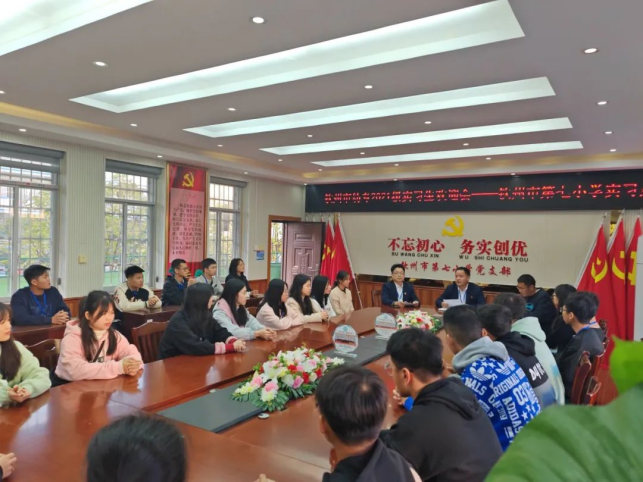 实习活动开始第一天,实习学校的领导、老师们为实习学生举行了见面座谈会,对同学们的到来表示欢迎,对学生实习期间的工作进行了具体安排和提出纪律要求,并希望同学们尽快融入集体、熟悉工作流程,主动适应从学生到教师的身份转变。