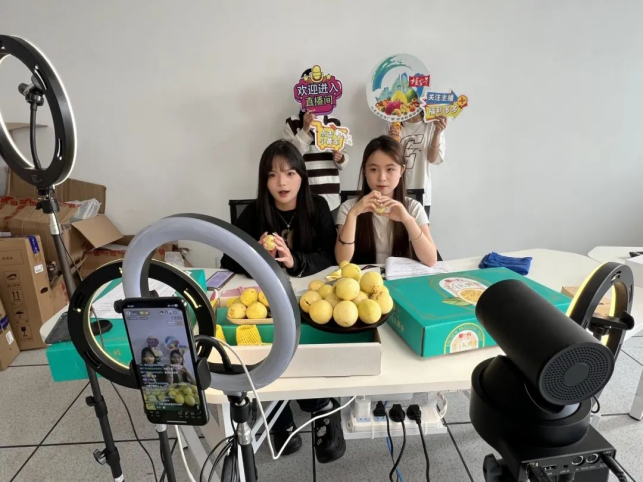 Δ电子商务专业学生在我校综合楼直播间进行直播操练