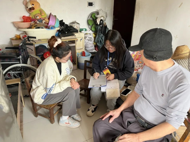 Δ行政管理专业高岭小组成员在家兴苑走访调查老人生活基本情况,收录低保信息