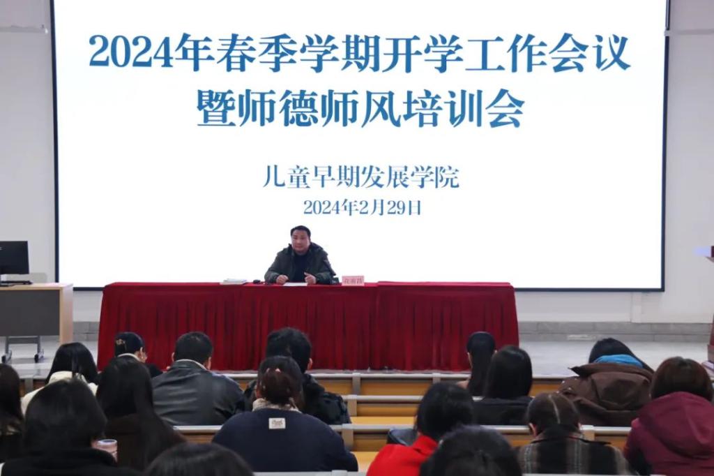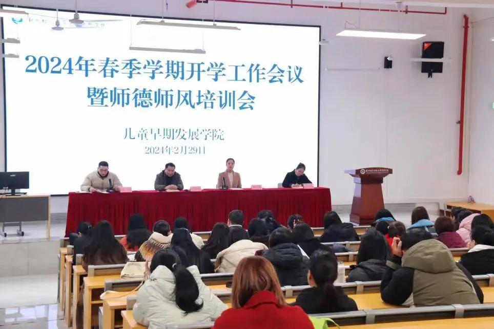 为谋新篇开新局,确保新学期各项工作平稳有序进行,2月29日,儿童早期发展学院召开2024年春季学期开学工作会议暨师德师风培训会。学院全体教职工共60多人参加会议。