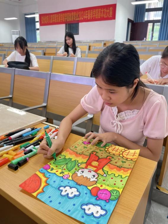 绘画是幼儿教师必备的基本技能之一,为了提高学前教育专业学生的绘画水平,有效促进专业水平发展,同时为他们提供互相学习、互相交流、互相促进的平台,近日,我校儿童早期发展学院在综合楼111教室举办了“儿童主题画”基本功比赛。