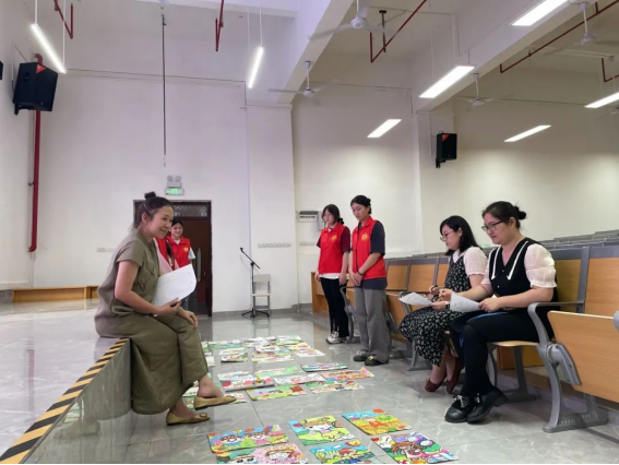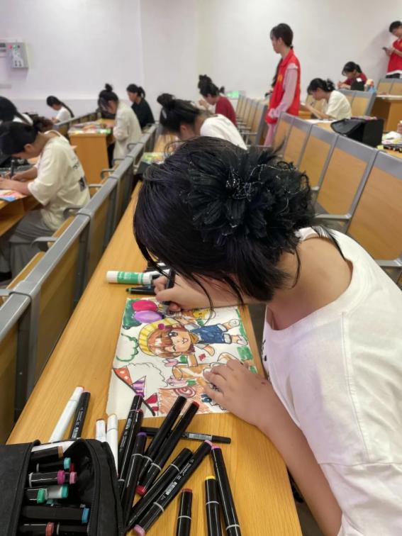 决赛伊始,陈斌老师向选手们宣读比赛规程,接着志愿者从“六一儿童节”和“童心看世界”两个主题内容中抽签,最后选手们再围绕抽中的主题“六一儿童节”进行现场创作绘画。