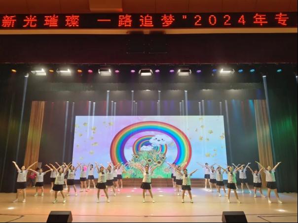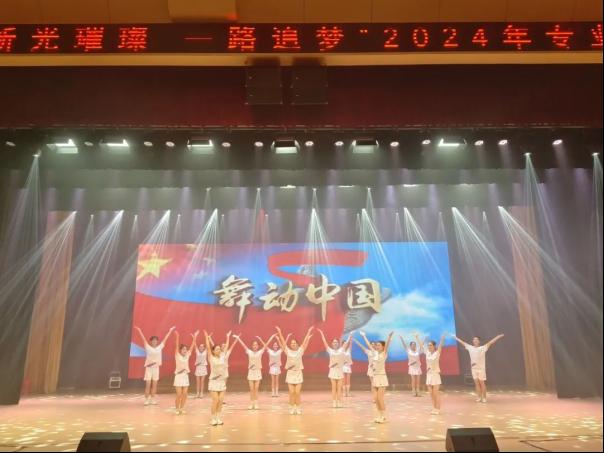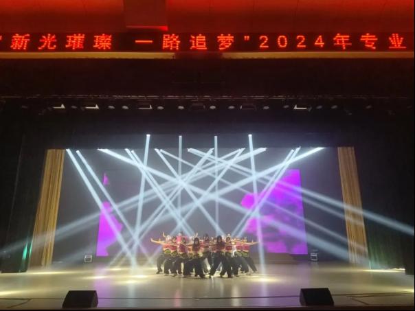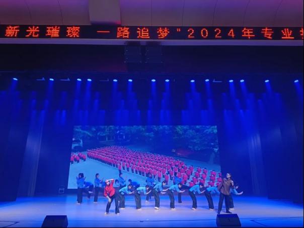 除了专业技能展示,同学们还带来了才艺表演,有轻盈如燕、婉约如仙的古典舞,也有嗨翻全场的爵士舞。自治区学生运动操舞锦标赛啦啦操冠军节目《中国龙》,带给我们的是一场充满活力与激情的视觉盛宴,队员们整齐划一地摆动着手中的花球,每一个动作都充满了力量和美感,向观众们展现青春的活力,用热情感染着在场的每一个人。