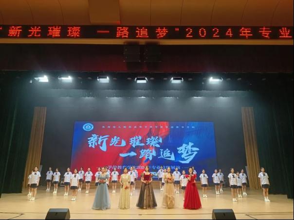 近日,学前教育学院“新光璀璨 一路追梦”2024年专业技能大赛展演在体育与艺术学院报告厅举行。校党委委员、副校长颜循泽,学院教育学院院长梁艳珍、学前教育学院党支部书记覃年升与师生代表一同观看了演出。